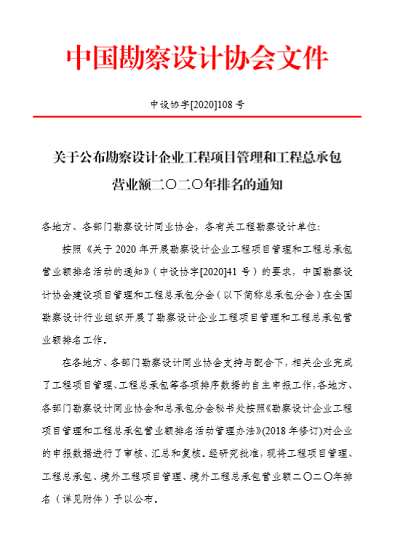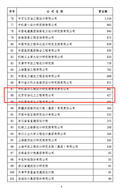 近日,中國勘察設(shè)計(jì)協(xié)會發(fā)布了《關(guān)于公布勘察設(shè)計(jì)企業(yè)工程項(xiàng)目管理和工程總承包營業(yè)額二0二0年排名的通知》,北京石油化工工程有限公司獲工程總承包營業(yè)額排名第52位、工程項(xiàng)目管理排名第88位。
