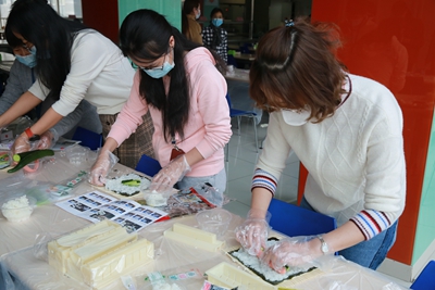 在這個(gè)屬于“女神”的節(jié)日里,工會組織女職工進(jìn)行了一場愜意又休閑的手工制作活動(dòng)。工作人員將事先準(zhǔn)備好的制作壽司、雪媚娘等食品所需要的原材料在職工食堂擺放整齊,讓大家親自動(dòng)手進(jìn)行制作。制作過程中,大家親密交談,協(xié)同制作,在忙碌的工作之余度過了一段難忘的午后時(shí)光。