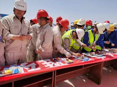 啟動儀式上,公司總經(jīng)理助理田平漢在講話中強(qiáng)調(diào),一是要重視開展安全生產(chǎn)月活動對安全生產(chǎn)工作的促進(jìn)作用,全力維護(hù)項目安全穩(wěn)定,為建黨100周年營造良好安全環(huán)境;二是要以“安全生產(chǎn)月”活動為契機(jī),推動榆神乙醇項目的安全生產(chǎn)工作;三是要團(tuán)結(jié)一致、凝心聚力扎實推進(jìn)安全生產(chǎn)工作,確保實現(xiàn)全年安全生產(chǎn)目標(biāo);四是總包、施工分包商要各盡其責(zé),重視安全、綠色、文明施工,做好現(xiàn)場環(huán)境保持。隨后,田平漢帶領(lǐng)與會的170多名總包、施工單位員工代表進(jìn)行了安全宣誓,“我一定遵守安全規(guī)定,時刻注意安全,聽從指揮……”,鏗鏘有力的宣誓聲詮釋著項目參建人員對安全生產(chǎn)工作的態(tài)度和決心。