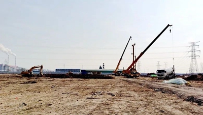 目前,打樁工作正在緊鑼密鼓的進行,共需要打樁233根,已完成114根,剩余樁基計劃本月底前全部打完。(通訊員/張曉峰 攝/張曉峰)