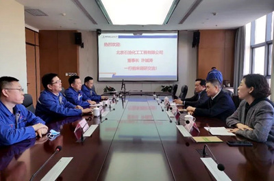 3月31日,北京石油化工工程有限公司黨委書記、董事長許緘濤,副總經理鄭薇一行赴陜西精益化工有限公司調研交流,受到該公司董事長常懿等領導的熱情接待。