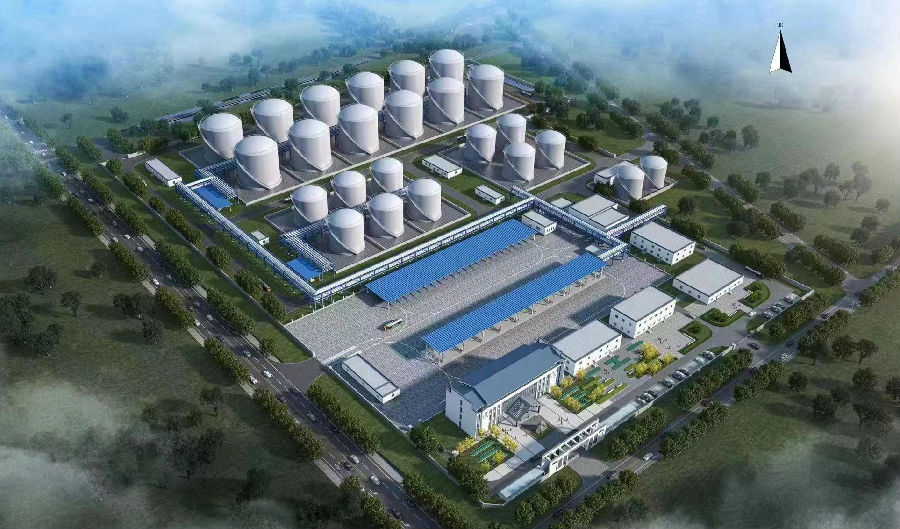 該項目位于滄州市東北部南大港產業園區東興工業區,總占地147.33畝,儲存經營的油品為丙A類燃料油、石腦油、柴油及丙B類瀝青,總設計庫容為17萬立方米。整個項目分為三大區域:油罐區、汽車裝卸區和管理辦公區。