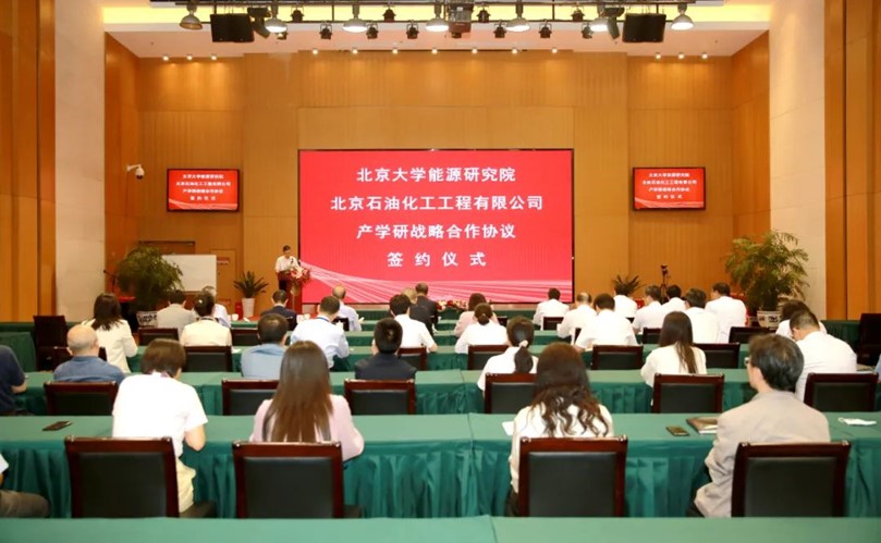 5月19日,北京石油化工工程有限公司(簡稱:北油工程)與北京大學能源研究院(簡稱:北大能研院)簽署產學研戰略合作協議。公司黨委書記、董事長許緘濤與北大能研院副院長楊雷分別致辭并代表雙方單位簽約,共同開啟科技創新互贏合作的新篇章。