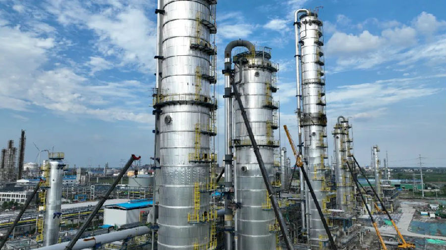 目前,項目現場正在進行管道吹掃、設備調試等投產前的準備工作,項目部統籌協調,確保交叉作業安全有序推進。