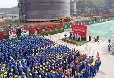延長石油延安天然氣儲氣調峰及配套LNG項目現場召開了主題為"安全生產月及世界環境日"安全生產月啟動儀式,延長石油集團煉化公司項目建設指揮部指揮、黨委副書記祈潤宏,黨委委員、副指揮周玉和,副指揮王毅彪 ,北京石油化工工程有限公司副總經理、安全總監楊礫出席活動。儀式上,參建人員進行安全宣誓并在主題橫幅上鄭重簽名,現場同時發放安全宣傳手冊。